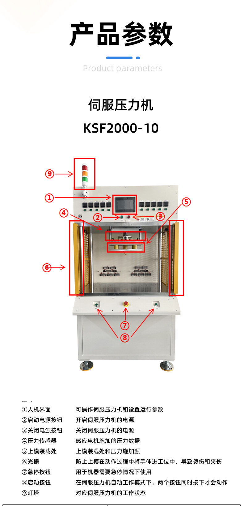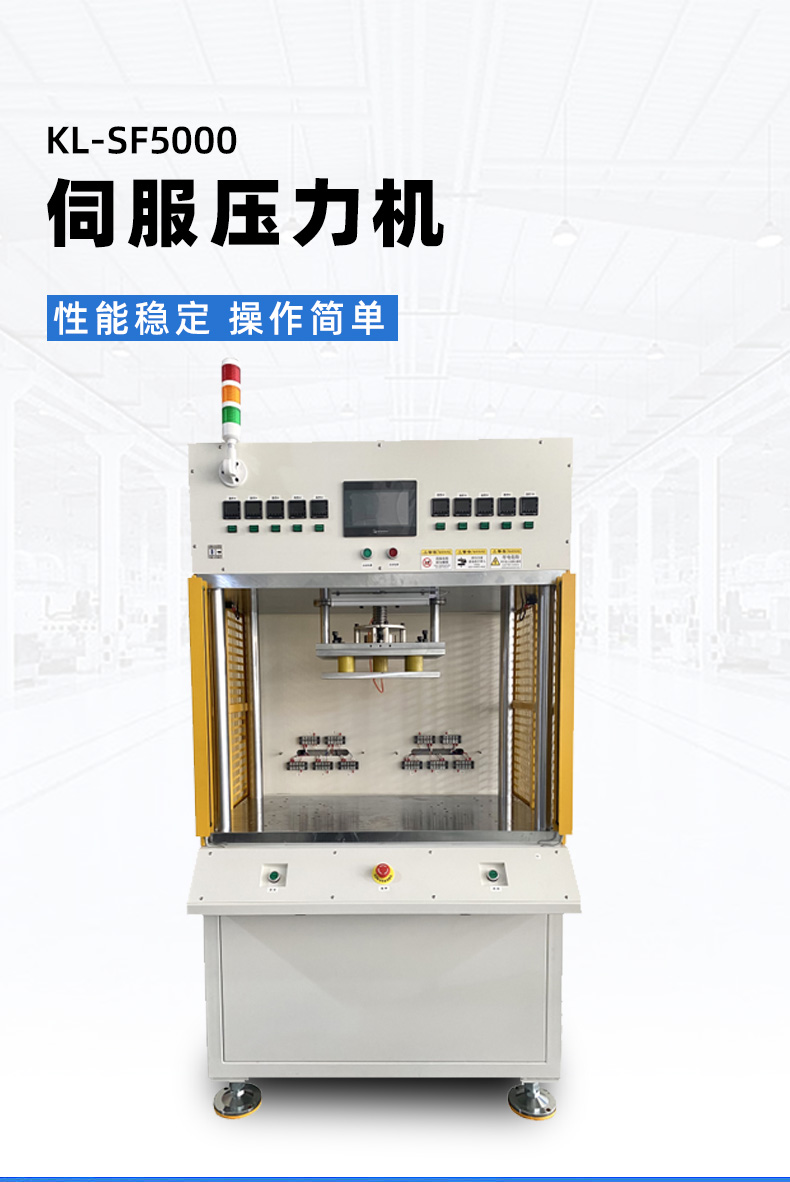 精密數控伺服電子壓力機簡稱伺服壓力機、電子壓力機,其工作原理是由伺服電機驅動H精度滾珠絲桿進行精密壓力裝配作業,全程實現壓裝力與壓入深度的閉環控制。另可配置加熱、實時壓力曲線顯示、多工位、掃碼、自動化等功能。