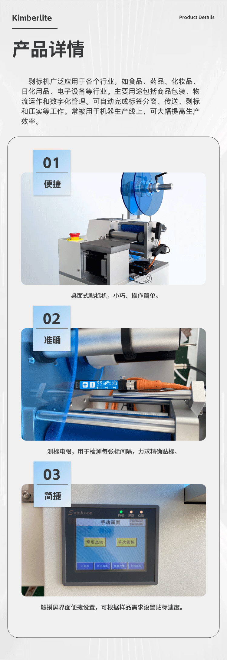 剝標機廣泛應用于各個行業,如食品、藥品、化妝品、日化用品、電子設備等行業。主要用途包括商品包裝、物流運作和數字化管理。可自動完成標簽分離、傳送、剝標和壓實等工作。常被用于機器生產線上,可大幅提高生產效率。